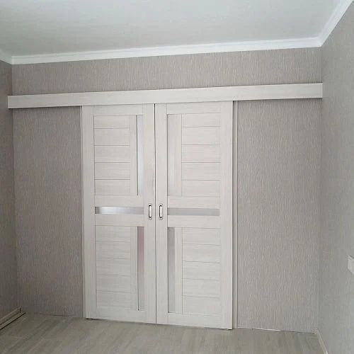 Установка раздвижной скользящей конструкции выполняется только после выполнения ремонта. Для монтажа такой системы на стену крепятся рельсы, по которым и будет скользить дверь.