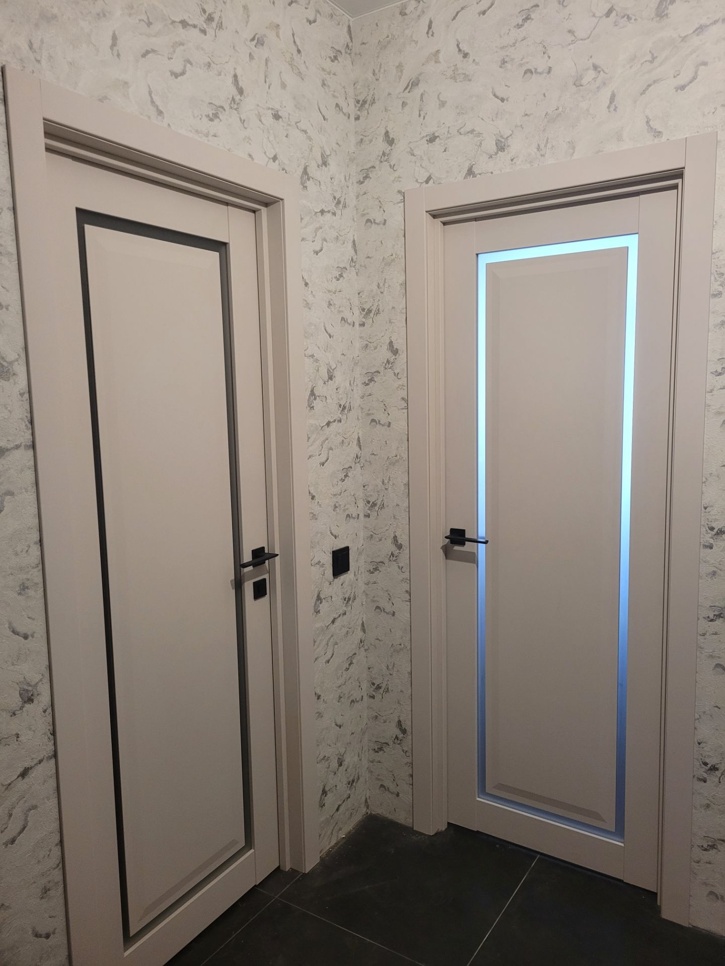 Кроме того производится врезка под скрытые петли. Такая опция помогает избежать лишних пыльных работ на адресе и сокращает время работы на монтаже. По возможности врезки в конкретную модель уточняйте у менеджеров.