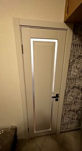 Дверь ПО Queen N23 Велюр светлый стекло белое из Экошпона COVERFLEX (Двери Нева) в с установкой и доставкой