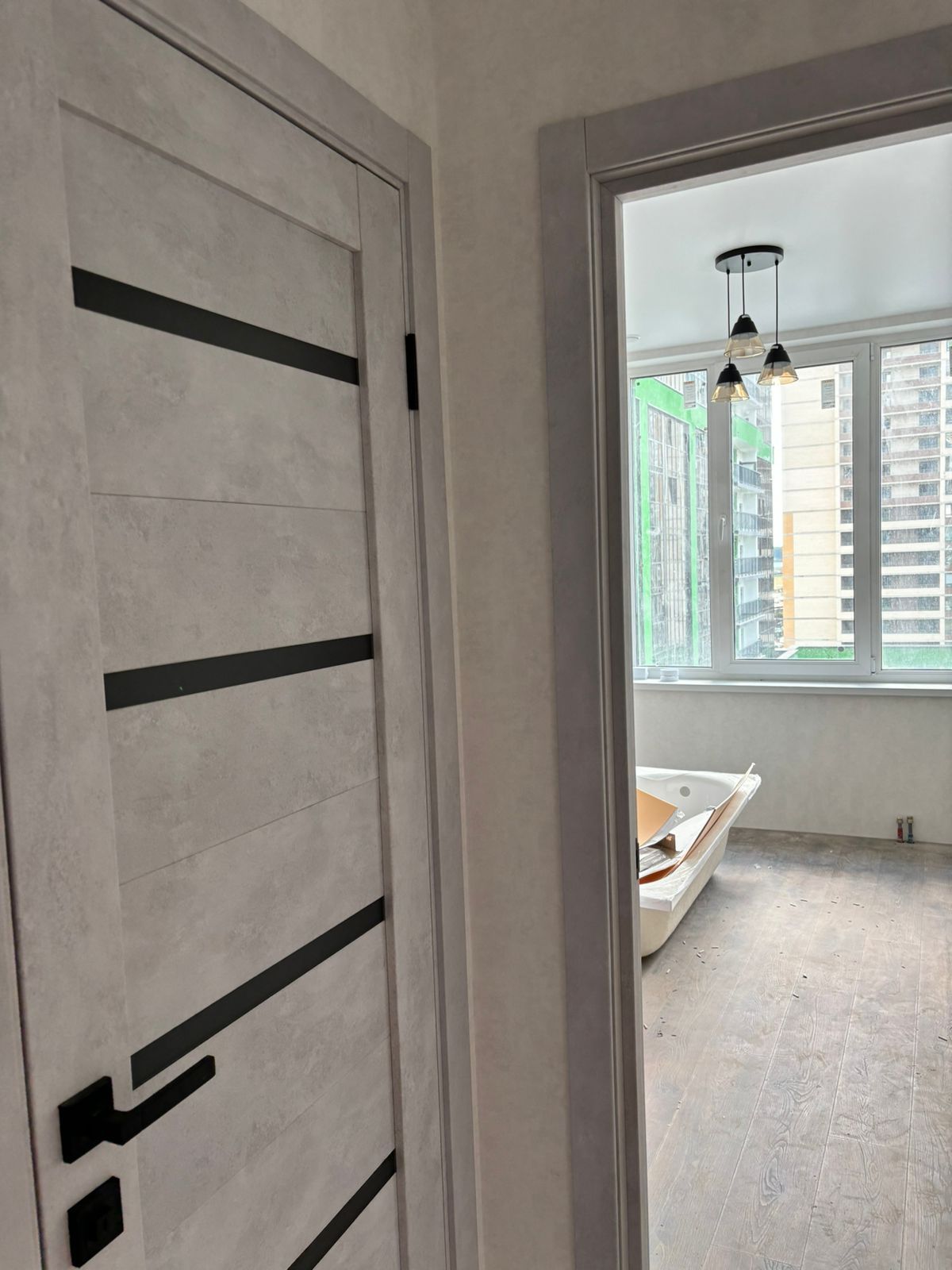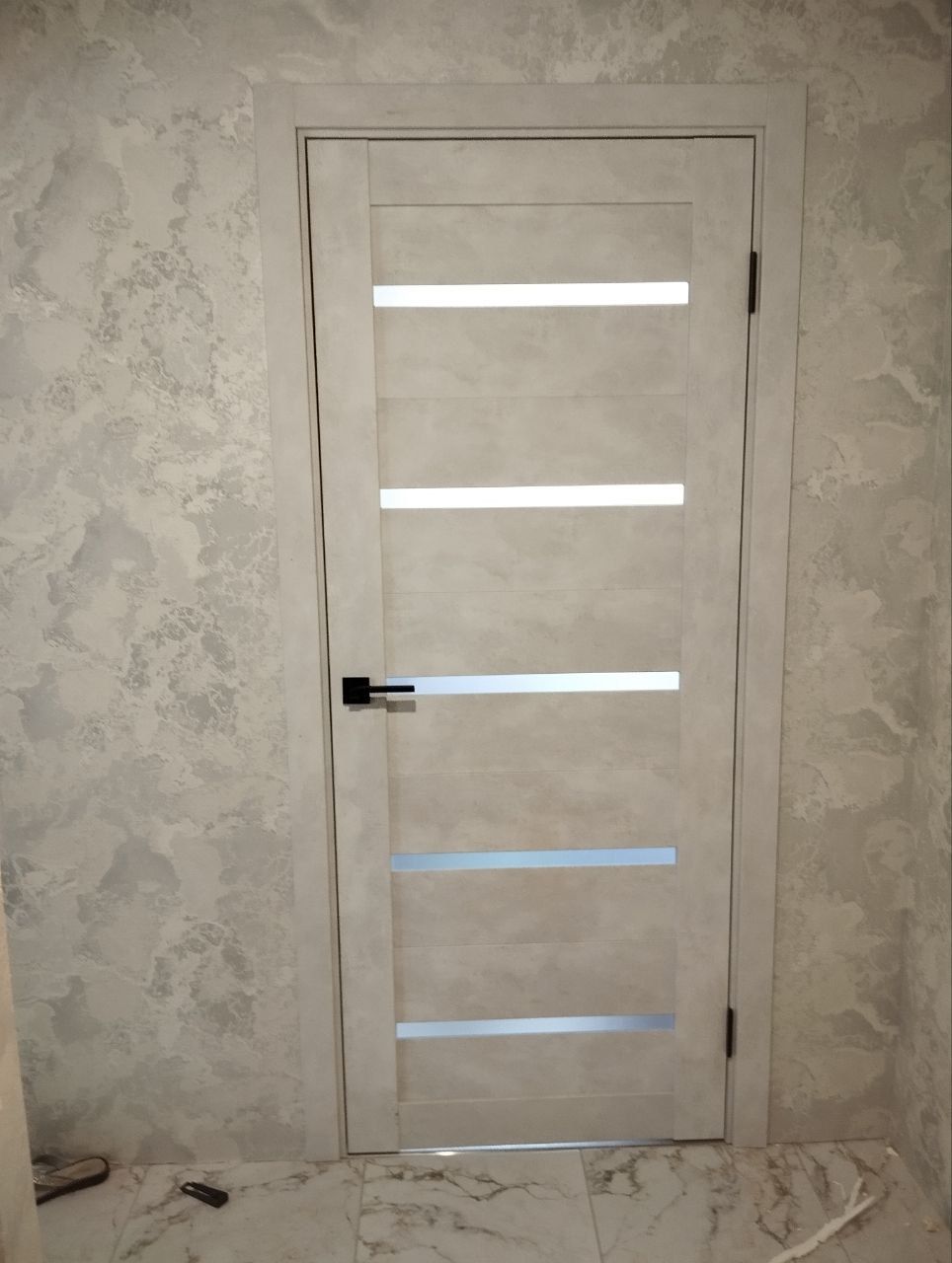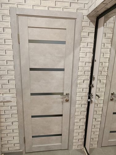 Посчитаем стоимость входной двери ПО Relief 1 Бетон лайт стекло графит со внутренней отделкой в течение 15 минут!