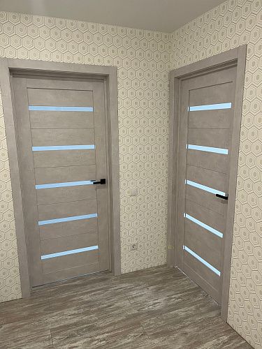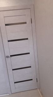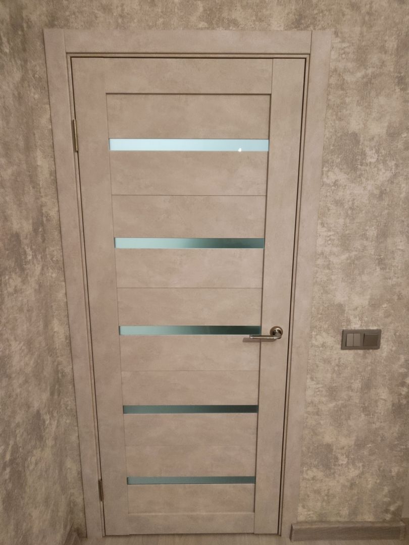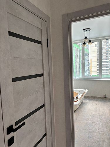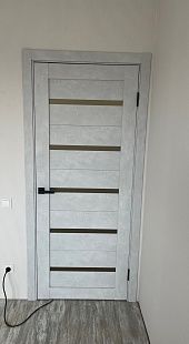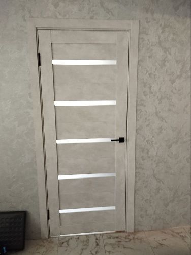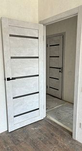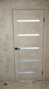 Дверь ПО Relief 1 Бетон лайт стекло графит из Экошпона COVERFLEX (Двери Нева) в с установкой и доставкой