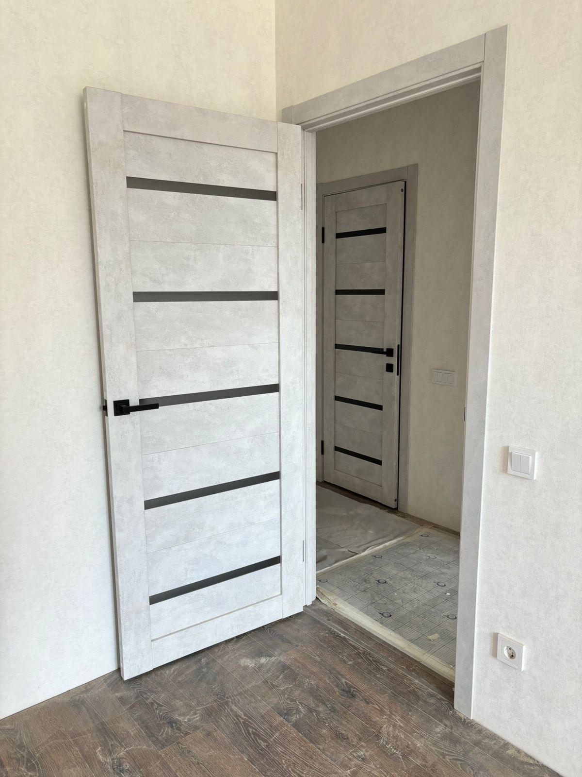 Кроме того производится врезка под скрытые петли. Такая опция помогает избежать лишних пыльных работ на адресе и сокращает время работы на монтаже. По возможности врезки в конкретную модель уточняйте у менеджеров.