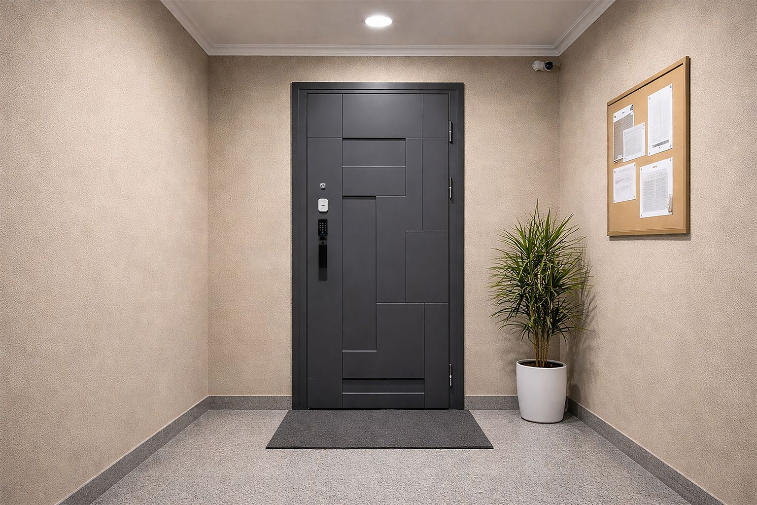 Дверь НЕВА 101 Серая + замок Moorgen T3+ в с установкой и доставкой
